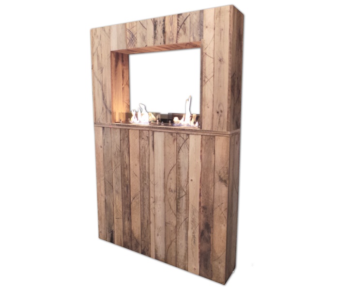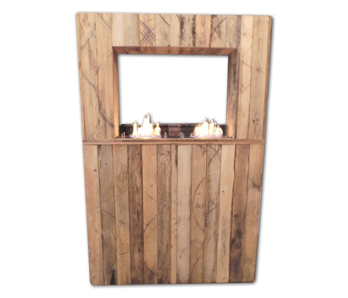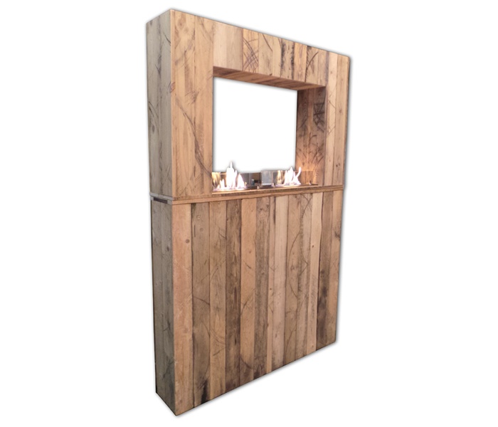 Steigerhout is een van de grotere meubilairtrends van de laatste jaren. Met deze steigerhouten schouw kunt u een unieke sfeer creëren tijdens bijvoorbeeld een tuinfeest. Om gewicht te besparen is dit product gemaakt van sloophout.