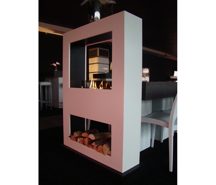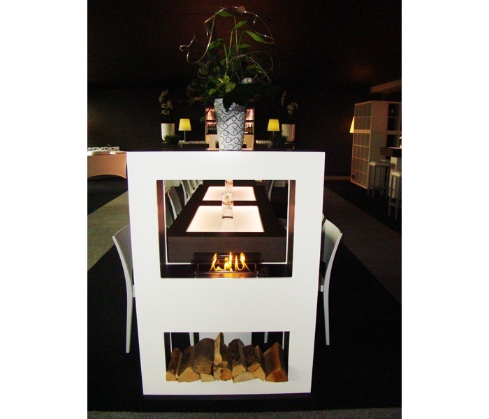 Deze witte trendy schouw wordt standaard geleverd met bio-brander. Vergeet dus niet bio-ethanol mee te bestellen!