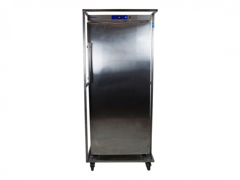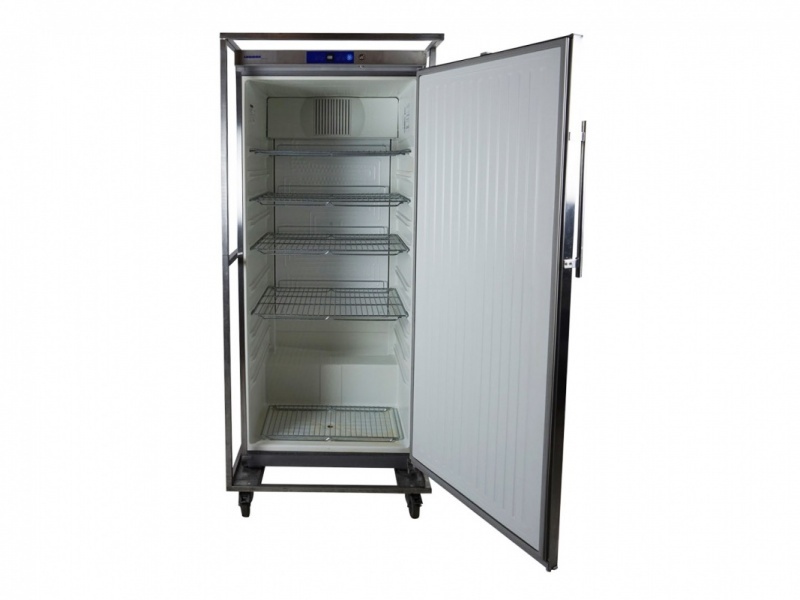 Deze keukenkoelkast heeft een inhoud van 700L en wordt geleverd in een beschermende en verrijdbare kooi. De koelkast heeft 4 uitneembare roosters, elk rooster biedt plaats aan 2 Gastronorm schalen.