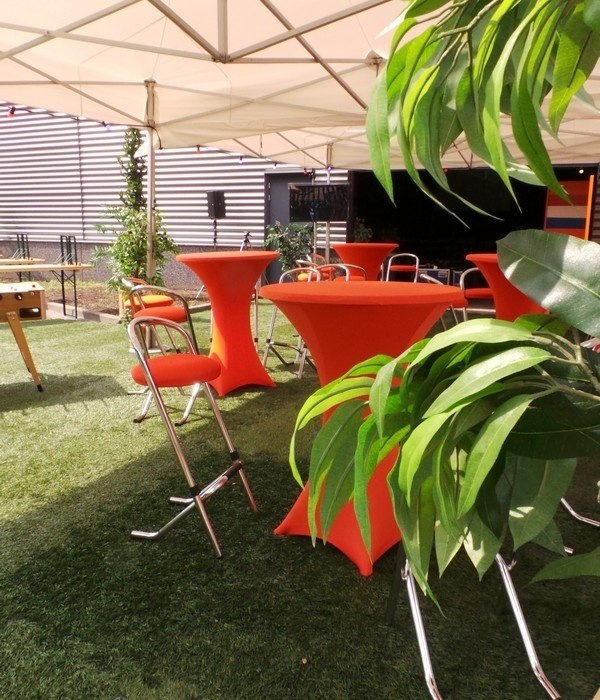 Je bent hier Linnen Statafelrokken Statafelrok stretch met tophoes oranje