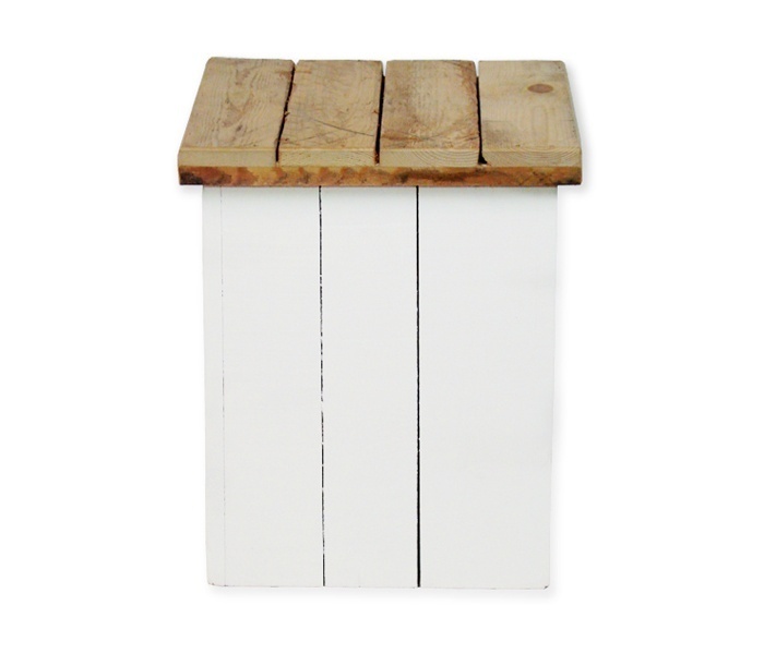 Mixed Wood is een combinatie van steigerhout en wit steigerhout, dit zorgt voor een frisse indruk en creëert een ontspannen en rustige sfeer. Deze kruk steigerhout laag mixed is ook te gebruiken met kussen. Deze zijn tegen een meerprijs te verkrijgen. Deze lage steigerhouten krukken mixed zijn een aanvulling bij de steigerhouten tafels uit ons assortiment. Met de verschillende kleuren kussens die wij in onze shop hebben kunt u iedere gewenste sfeer creëren. Om gewicht te besparen is dit product gemaakt van sloophout.