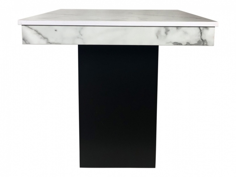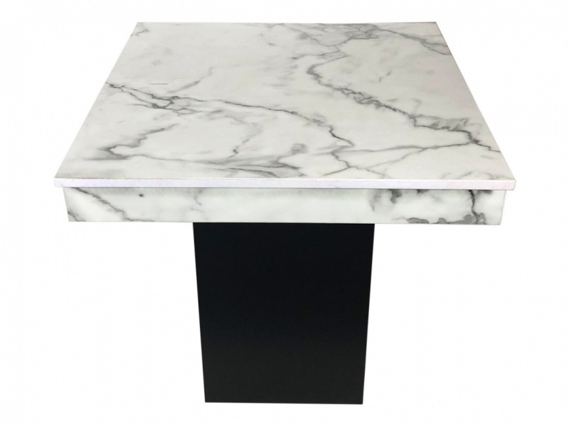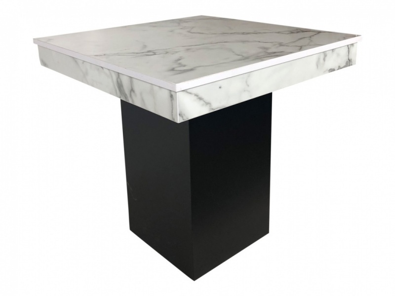 Deze dinertafel is vierkant en uitgerust met een prachtig marmeren blad.