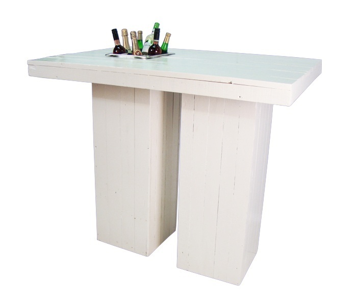Steigerhout is een van de grotere meubilairtrends van de laatste jaren. Deze statafel steigerhout wit kan zowel binnen als buiten staan! Met deze steigerhouten statafel wit kunt u een unieke sfeer creëren tijdens bijvoorbeeld een tuinfeest. Het blad van deze statafel steigerhout wit is demontabel. Om gewicht te besparen is dit product gemaakt van sloophout.