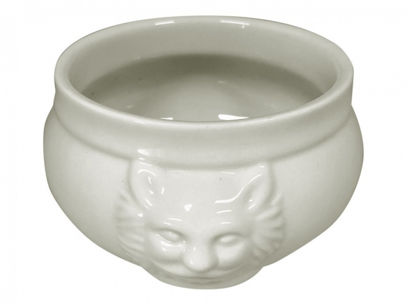 Nostalgische soepkop op voet, van wit porselein met aan beide zijden twee leeuwenkopjes.